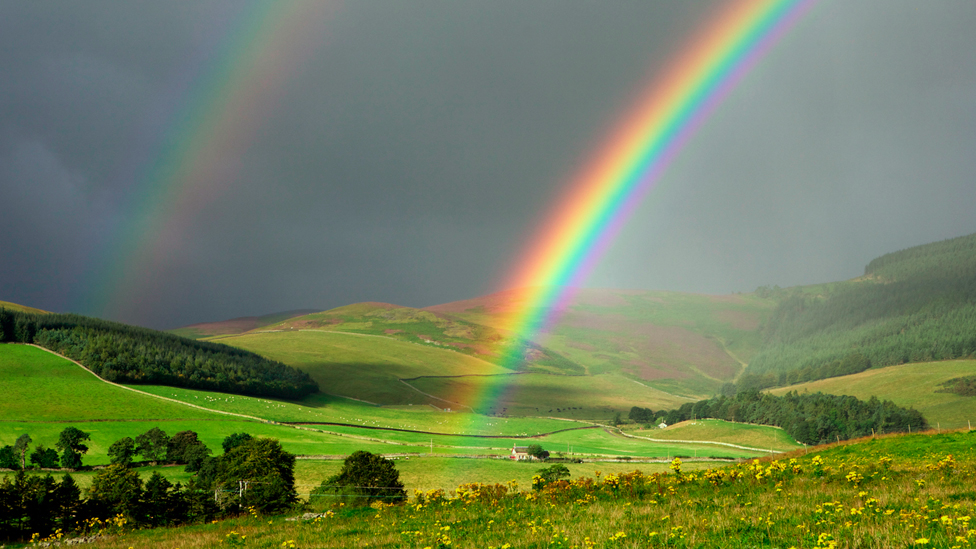 Before: rainbow seen with color blindness After: rainbow seen with EnChroma Cx