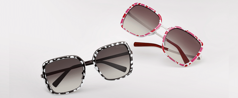 The new sunglasses are available in white/rose with matt white metal temples and brown shaded lenses, or in dark brown/white with matt brown metal temples and brown shaded lenses. The Max Mara collection of sunglasses and optical frames is produced and distributed by the Safilo Group.