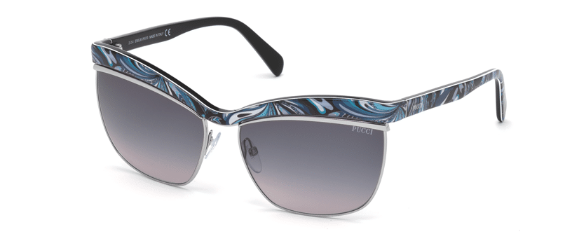 The new EP0009 retro-style sunglasses in acetate and metal exude a sense of simplicity and elegance, a charm only enhanced by their feminine architectonic structure and gently squared profiling. With lines and volumes in perfect harmony, the model invokes the elegance and femininity that is so indicative of the Emilio Pucci brand.