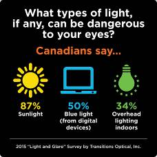 In addition to thinking that sunlight is dangerous to the eyes, Canadians also believe that blue light from digital devices (50 percent) and overhead lighting indoors (34 percent) can be harmful to the eyes as well.