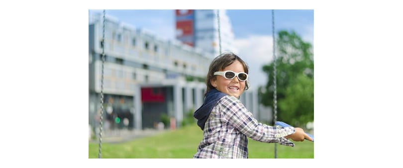 Amblyz, manufactured by XPAND 3D, are battery-powered electronic glasses with a liquid crystal shutter that functions as a digital patch, occluding vision in each eye for a set length of time each day.