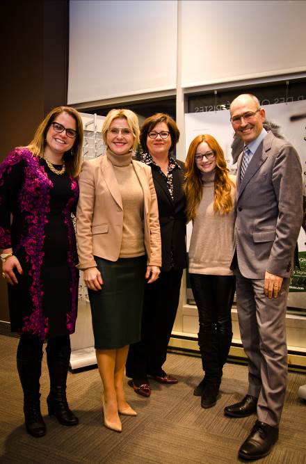 From Left to Right: Isabelle Tremblay-Dawson, Transitions Optical; Marie-Josée Mercier, Lunetterie New Look Eyewear; France Reimnitz, Lunetterie New Look Eyewear ; Laurence Leboeuf; Martial Gagné, Lunetterie New Look Eyewear