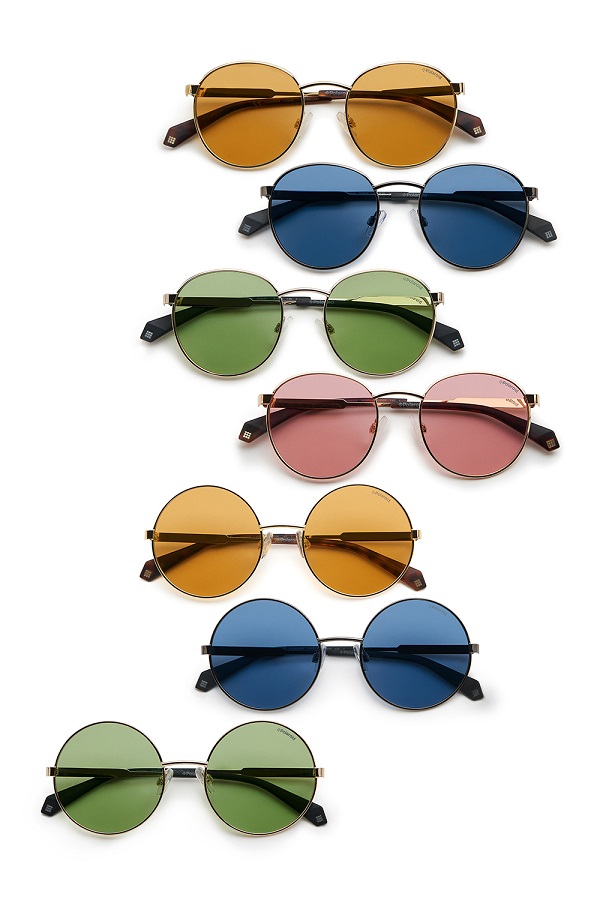The new collection includes two sunglasses: a feminine, 1970s-inspired oversize rounded model (PLD 2053/S), and a unisex style with a smaller, rounded silhouette (PLD 4052/S).