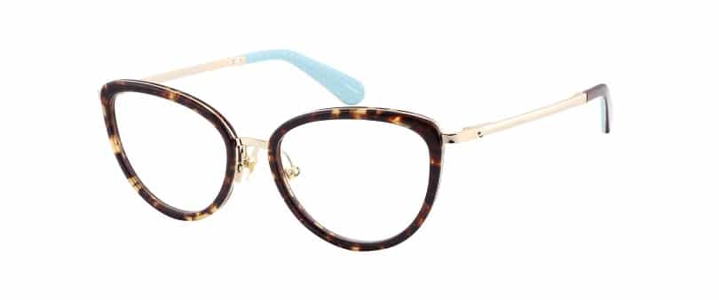 Kate Spade New York’s Audri/G is a beautiful soft cat eye-shaped combination frame with an acetate front and temple tips. Using a new Cabana dot pattern to perfection, it features a metal nose bridge and thin temples with a subtle metal spade logo on each