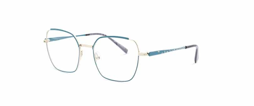 This unconventional feminine frame will amaze, not only with its double colouring reminiscent of the Mediterranean waters, but also by the geometrical pattern that adorns the temple. This form, classic in appearance, is metamorphosing into an icon of design thanks to its contrasting and superimposed line, following the brow bone. The perfect frame to brighten up any look.