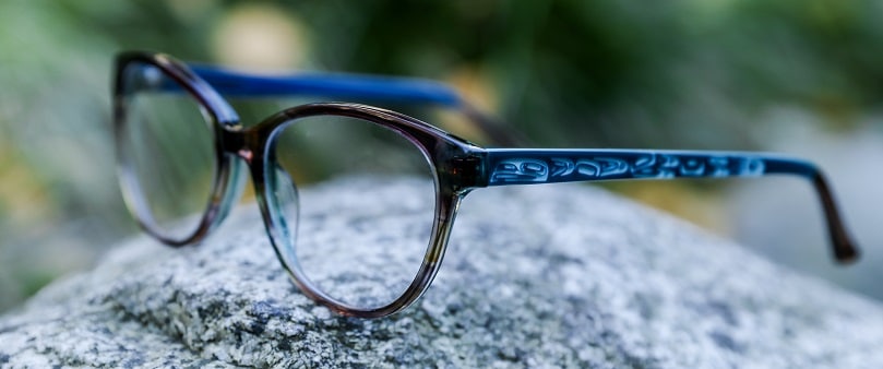 AYA’s model “Catherine” is a delicate yet stylish option that can easily work with a high-powered suit or a weekend casual look. Warm crystal brown with blue hues or crystal smoke, take your pick. Incredible detailed raven artwork embellishes the temples and then