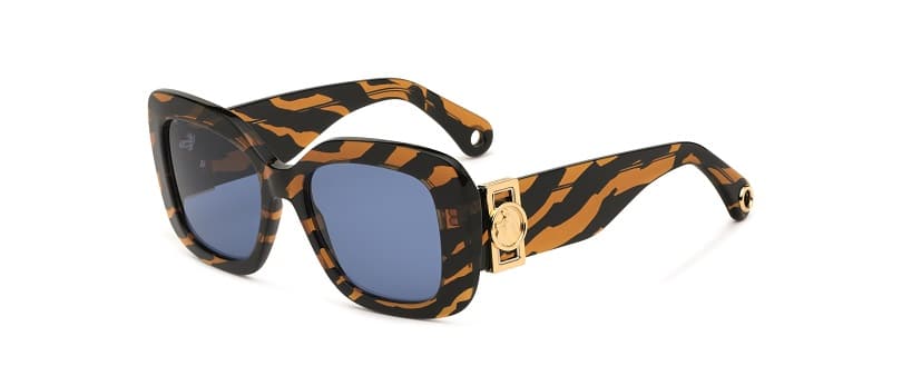 These feminine sunglasses are designed in an oversized rectangular silhouette, crafted in lightweight acetate. The iconic Mother and Child logo is placed on the temples in shiny gold, while hollowed temple tips have been designed to host the Lanvin eyewear chain.