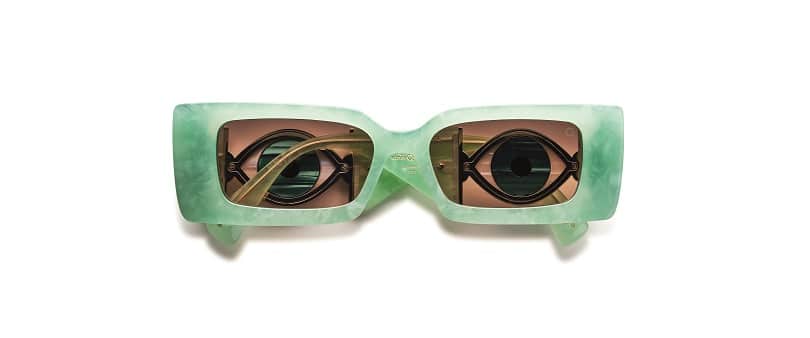 Etnia Barcelona once again collaborates with the artist Ignasi Monreal, for Volume 2 of its limited-edition capsule. OJO Vol. 2, just like Jade itself, is Yu. The glasses play with the fantasy notion of having an extra pair of eyes. One single version of the sunglasses in three distinct colours: lavender, water green and Havana.
