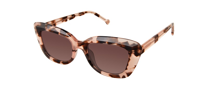 OTPS-2031’s Rose Tortoise is a fun and flirty frame created using colourful patterned biodegradable acetate. Its thin cat-eye shape is a trending look for OTP’s target market, while bevelling along the top and sides softens its chunky profile. It features TS lenses that take less energy to produce than traditional sun lenses.
