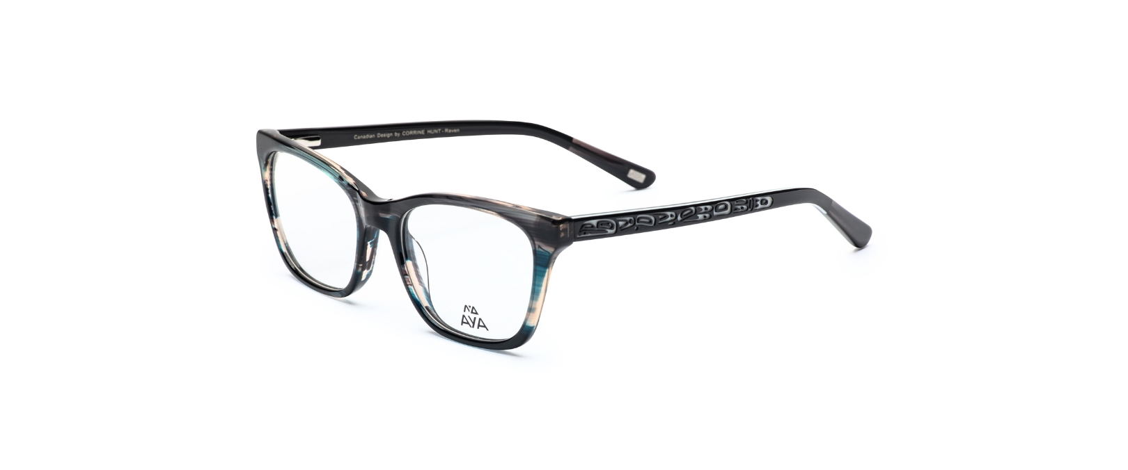 Step into sophistication and playfulness with these extraordinary frames by Corrine Hunt. Enchanting raven designs add mystique, while striated blue and champagne-teal fusion colours captivate. Meticulously crafted with contrasting temple tips, these frames ensure unparalleled comfort. Elevate your style and embrace uniqueness.