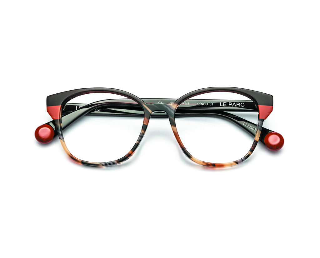 Stylish LE PARC designer eyewear with red and tortoiseshell accents.
