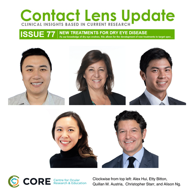 In response to accelerating clinical interest about new, innovative treatments for dry eye disease, the Centre for Ocular Research & Education (CORE) has dedicated Issue 77 of Contact Lens Update to several recent introductions and promising pipeline developments. The publication is available at no charge by visiting ContactLensUpdate.com.