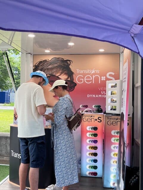 Transitions® showcased Gen STM at the Festival d’été de Québec from July 4 to July 14. Located on Grande Allée, the booth featured an eye-catching setup that attracted festivalgoers eager to explore the offerings.