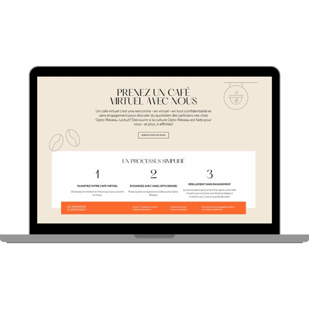 Opto-Réseau is innovating its recruitment process by offering opticians the opportunity to discover the culture and daily life of the company in a simple and relaxed manner. With the “virtual coffee” initiative, optical professionals can have confidential discussions with a network optician without any commitment.