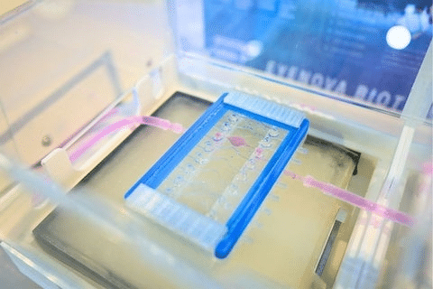 The Eye-On-a-Chip technology mimics an eye environment for testing products like contact lens materials, multipurpose solutions, and pharmaceuticals. Utilizing microfluidics to simulate tear flow, it enables real-time imaging and employs a patented automatic image analysis algorithm—saving researchers and pharmaceutical companies both time and money while generating reliable data.