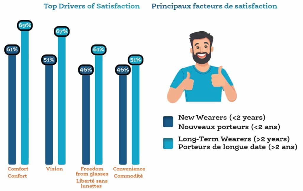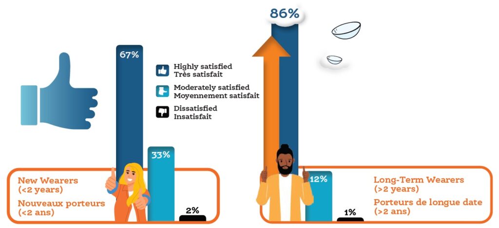 Vision quality also played a significant role, as 67% of long-term wearers were highly satisfied with their vision, compared to 51% of new wearers.