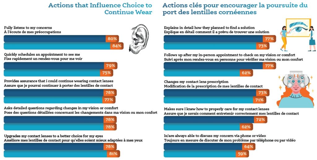 New wearers in particular expressed a strong preference for personalized follow-ups, with 77% stating that they would appreciate a post-exam check-in to assess their vision and comfort. Furthermore, 80% of patients identified “fully listening to my concerns” as the most important factor in resolving contact lens-related issues.
