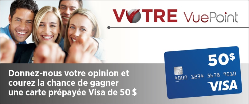 Cliquez sur le lien ci-dessous pour répondre au premier sondage de VuePoint, connaître les détails sur le prix et pour courir la chance de gagner!