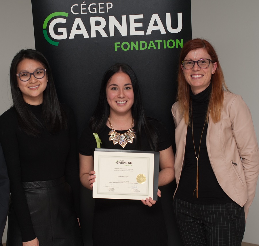 La représentante du Cégep Garneau; Isabelle Bernier – Lauréate; Caroline Montreuil – Essilor Canada.