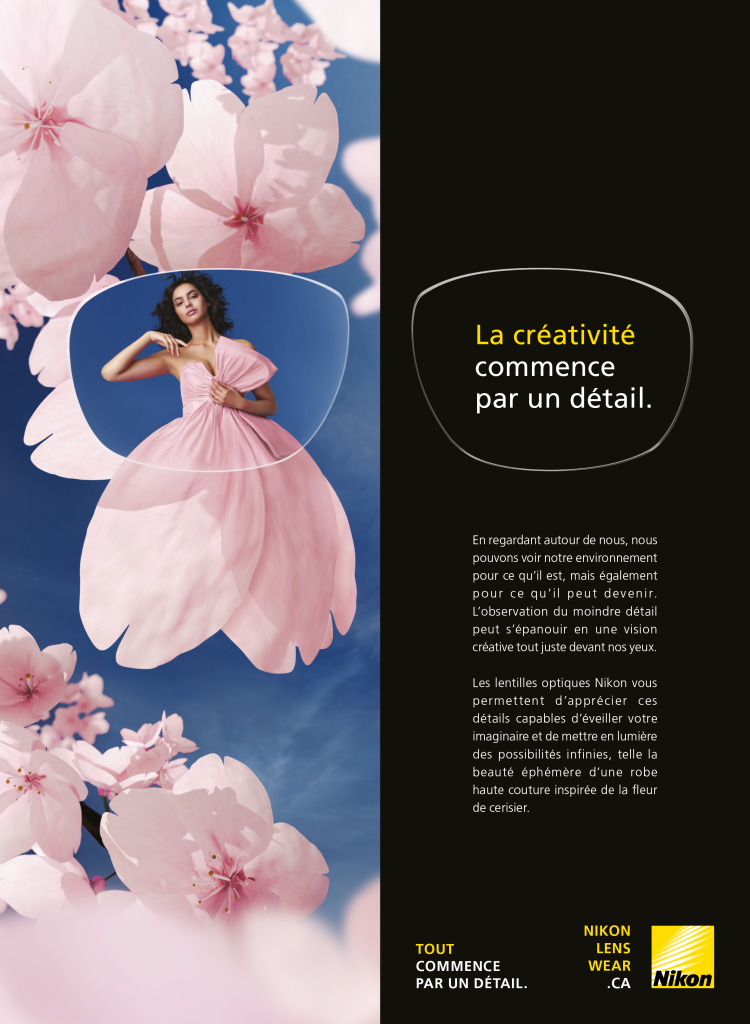 Cette campagne se déroulera d’octobre à décembre 2021 d’un océan à l’autre et générera plus de 14 millions d’impressions à travers le Canada. La marque Optique Nikon sera exposée aux consommateurs de tout le pays par l’entremise d’importants efforts publicitaires, notamment dans des magazines de mode et de luxe tels qu’Elle Canada, Elle Québec, Dolce et Mixte. De plus, une campagne visant à stimuler la visite en magasin sera menée auprès des consommateurs à fort potentiel tandis qu’une stratégie complète de médias sociaux sera déployée. Finalement, en plus du lancement de cette campagne, vient le déploiement d’un nouveau site Web pour les consommateurs. Ce site, épuré et convivial, vise à renseigner le public à propos de la santé oculaire, des lentilles et des points de vente.