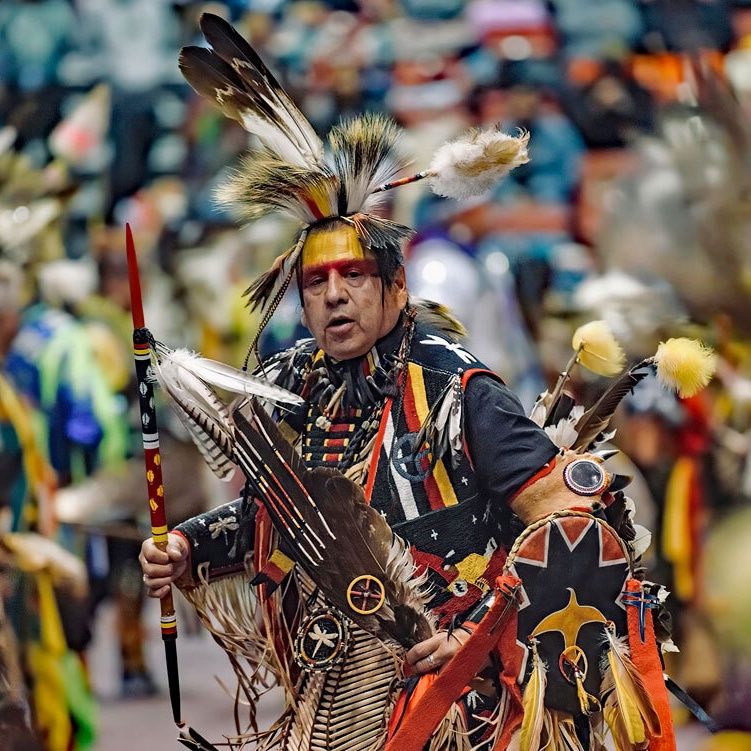 Issu d’une lignée d’artistes de la bande Itazipco de la nation Sioux de Cheyenne River, Jim Yellowhawk baigne dans l’art de ses ancêtres depuis l’enfance. Maître du ledger art, il explore également le collage, la lumière néon, et même la danse, pour donner vie à une œuvre foisonnante de symbolisme. Ses créations mettent en scène l’aigle, le bison et d’autres figures clés de la cosmologie lakota, incarnant l’unité et le cycle de la vie.