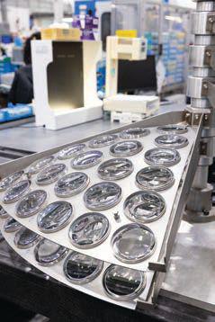 Au laboratoire de Groupe Vision New Look, situé à Montréal, on effectue du surfaçage de verres, de la coloration, de la taille et de l’adaptation aux dimensions de la monture. « Dans ces étapes, la perte de matière constitue le plus gros défi », avance Sébastien Chailley, vice-président principal, opérations et technologies. L’opération démarre avec un bloc de plastique qui a à peu près la forme et la dimension d’une rondelle de hockey, et qui pèse 150 grammes (qu’on appelle le semi-fini). Le résultat final : deux verres qui pèsent environ 20 grammes chacun. C’est donc dire que les trois quarts du plastique sont perdus dans l’opération.