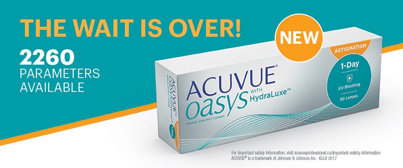 THE WAIT IS OVER! The latest ACUVUE® Brand Contact Lens for Astigmatism has arrived Introducing ACUVUE OASYS® Brand Contact Lenses 1-Day for...